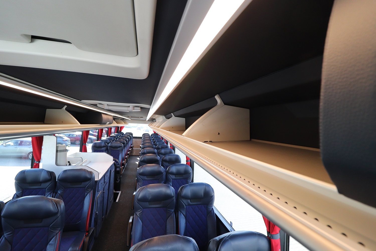 Foto’s van een van onze Royal Class touringcars, met extra ruimte tussen de stoelen.