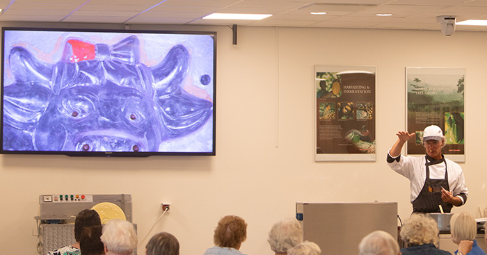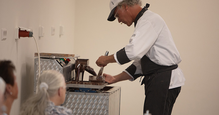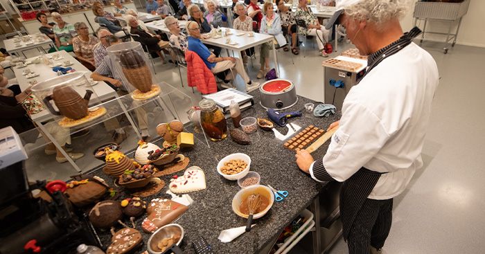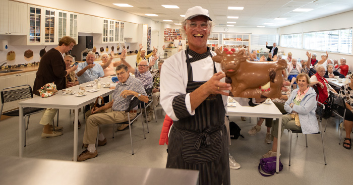 Tijdens uw bezoek krijgt u een film te zien over de chocoladeproductie en een uitgebreide toelichting van de meester-patissier, die zijn vakmanschap zal tonen bij het maken van vorm- en mouleerbonbons, evenals diverse chocoladefiguren.