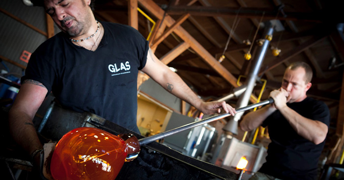 Na de boottocht brengen we een bezoek aan de glasblazerij in Leerdam. Hier kunt u met eigen ogen zien hoe vloeibaar glas door vuur, rook en hitte wordt omgetoverd tot iets moois. In Glasblazerij Leerdam zijn professionele glasblazers continu aan het werk, en maken ze de prachtigste en kleurrijkste voorwerpen. Vanaf de tribune heeft u uitstekend zicht op de glasblazers.