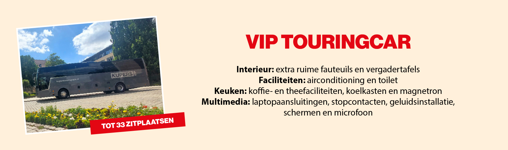 Een van de belangrijkste aspecten is het aantal personen. Hierop kunnen wij de inzet van onze touringcars aanpassen. Bij grote groepen zullen wij wellicht een dubbeldekker moeten inzetten, terwijl we bij kleine groepen onze midibussen kunnen gebruiken.