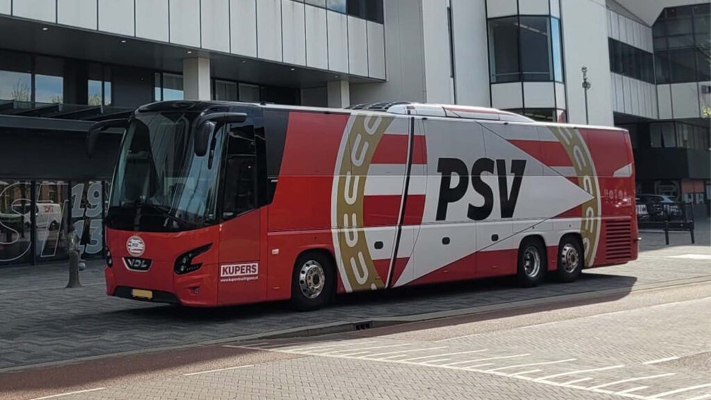 De officiële spelersbussen van FC Eindhoven, RKC Waalwijk, Willem II en Fortuna Sittard behoren ook tot ons wagenpark. Hiermee verzorgen wij het busvervoer van de eerste elftallen, jeugdelftallen en vrouwenelftallen van deze clubs.